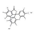 Rose bengal is a xanthene dye, fluorescein derivative, and photosensitizer. It exhibits absorption/emission maxima of 548/567 nm, respectively. Rose bengal binds to