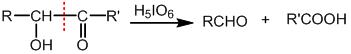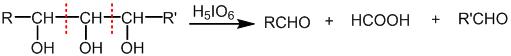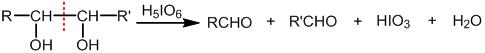高碘酸H5IO6(或HIO4)可使邻二醇中连有羟基的相邻碳原子之间的键断裂,伯醇或仲醇的反应产物为醛,叔醇的反应产物为酮。