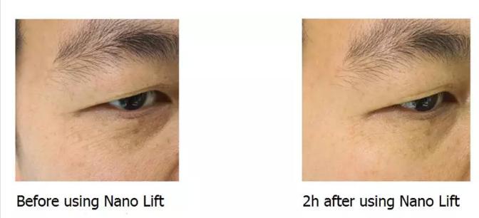 Nano Lift adjusts dosage according to the effects. It improves wrinkles and facial expressions lines through neuromuscular interactions -Nano Lift won't paralyze muscles. The effect lasts for more than 8 hours. After 8 hours, users can still feel crow's-feet fewer and skin is tighter than before.