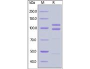 The protein has a calculated MW of 36.1 kDa. The protein migrates as 35-40 kDa when calibrated against Star Ribbon Pre-stained Protein Marker under reducing (R) condition (SDS-PAGE) due to glycosylation.