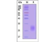 The protein has a calculated MW of 32.2 kDa. The protein migrates as 45-55 kDa when calibrated against Star Ribbon Pre-stained Protein Marker under reducing (R) condition (SDS-PAGE) due to glycosylation.