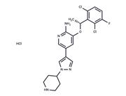 | Description | Crizotinib (PF-02341066) is an ATP-competitive small-molecule tyrosine kinase inhibitor of c-MET (IC50: 8 nM) and ALK (IC50: 20 nM) receptors. |
