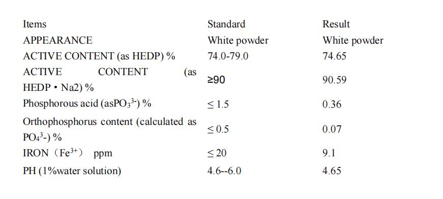 HEDP Na2 is an organic phosphonic acid scale and corrosion inhibitor, which can form stable complexes with iron, copper, zinc and other metal ions, and can dissolve the oxides on the metal surface. HEDP Na2 can still play a good role in corrosion and scale inhibition at 250℃, and it is still stable at high pH, not easy to be hydrolyzed, and not easy to decompose under general photothermal conditions. The acid and alkali resistance and chlorine oxidation resistance are better than other organic phosphonic acids (salts). It can form a six-ring chelate with metal ions in water, especially calcium ions, so it has good scale inhibition effect and obvious solubility limit effect. When used in combination with other water treatment agents, it shows an ideal synergistic effect. HEDP Na2 is widely used in electric power, chemical industry, metallurgy, chemical fertilizer and other industrial circulating cooling water systems, as well as scale and corrosion inhibition of medium and low pressure boilers, oil field water injection and oil pipelines; HEDP Na2 can be used as Metal & non-metal cleaning agent in textile industry; peroxide stabilizer and color fixing agent in bleaching and dyeing industry, complexing agent in cyanide-free electroplating industry.