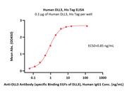 Biotinylated Human DLL3 (27-479) Protein, His,Avitag (DL3-H82Ea) is expressed from human 293 cells (HEK293). It contains AA Ala 27 - Ala 479 (Accession # Q9NYJ7-1).