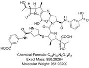 PI03006037 Ertapenem Dimer JF CAS No:N/A ||Chemical Formula:C44H48N6O13S2 ||Molecular Weight:933.01700 ||Exact Mass:932.27208 ||(4R,5S,6S)-3-(((3S,5R)-5-((3-carboxyphenyl)carbamoyl)pyrrolidin-3-yl)thio)-6-((R)-1-(((4R,5S,6S)-3-(((3S,5R)-5-((3-carboxyphenyl)carbamoyl)pyrrolidin-3-yl)thio)-6-((R)-1-hydroxyethyl)-4-methyl-7-oxo-1-azabicyclo[3.2.0]hept-2-ene-2-carbonyl)oxy)ethyl)-4-methyl-7-oxo-1-azabicyclo[3.2.0]hept-2-ene-2-carboxylic acid http://www.pipitech.com/ertapenem-dimer-jf.html