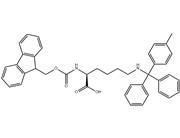 The Mtt group protects the histidine side chain from unwanted reactions during peptide synthesis. This protection is necessary because the imidazole group of histidine is prone to various side reactions that can disrupt the peptide synthesis process. Biological Assays and Protein-Ligand Interactions:Peptides containing Fmoc-His(Mtt) can be used in biological assays to study protein-ligand interactions. The histidine residue, once deprotected, can participate in metal ion coordination, hydrogen bonding, or other types of interactions with protein binding sites. These peptides can be labeled with fluorescent probes or other detection reagents to monitor binding events. They are useful in elucidating binding mechanisms or affinities of ligands for specific protein targets. Bioconjugation and Materials Science:The histidine residue in Fmoc-His(Mtt) can be used as a reactive handle for covalent attachment to other molecules or materials after deprotection. This bioconjugation finds applications in surface modification of biomaterials, immobilization of enzymes or antibodies, or the preparation of hydrogels and other biocompatible materials. The histidine residue can also be used for metal chelation, allowing the peptide conjugate to bind metal ions. This property can be exploited in various applications, such as targeted drug delivery or sensing and imaging. |