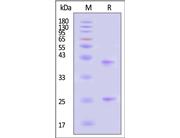 The protein has a calculated MW of 35.2 kDa. The protein migrates as 40 kDa when calibrated against Star Ribbon Pre-stained Protein Marker under reducing (R) condition (SDS-PAGE) due to glycosylation.