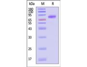 The protein has a calculated MW of 59.8 kDa. The protein migrates as 70-90 kDa when calibrated against Star Ribbon Pre-stained Protein Marker under reducing (R) condition (SDS-PAGE) due to glycosylation.