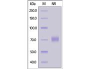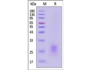 The protein has a calculated MW of 22.0 kDa. The protein migrates as 35-45 kDa when calibrated against Star Ribbon Pre-stained Protein Marker under reducing (R) condition (SDS-PAGE) due to glycosylation.