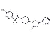 | In vitro | At nanomolar concentrations, I-191 inhibited PAR2 binding of and activation by structurally distinct PAR2 agonists (trypsin, peptide, nonpeptide) in a concentration-dependent manner in cells of the human colon adenocarcinoma grade II cell line (HT29).?I-191 potently attenuated multiple PAR2-mediated intracellular signaling pathways leading to Ca2+ release, extracellular signal-regulated kinase 1/2 (ERK1/2) phosphorylation, Ras homologue gene family, member A (RhoA) activation, and inhibition of forskolin-induced cAMP accumulation.?The mechanism of action of I-191 was investigated using binding and calcium mobilization studies in HT29 cells where I-191 was shown to be noncompetitive and a negative allosteric modulator of the agonist 2f-LIGRL-NH2 The compound alone did not activate these PAR2-mediated pathways, even at high micromolar concentrations, indicating no bias in these signaling properties.?I-191 also potently inhibited PAR2-mediated downstream functional responses, including expression and secretion of inflammatory cytokines and cell apoptosis and migration, in human colon adenocarcinoma grade II cell line (HT29) and human breast adenocarcinoma cells (MDA-MB-231).?I-191 is a potent PAR2 antagonist that inhibits multiple PAR2-induced signaling pathways and functional responses.?I-191 may be a valuable tool for characterizing PAR2 functions in cancer and in other cellular, physiological, and disease settings. |