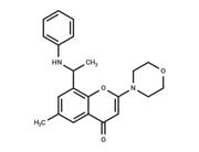 | In vivo | At concentrations ranging from 0.5 μM to 1 μM, PIK-93 impairs the stability of aggregates formed in differentiated HL60 cells treated with f-Met-Leu-Phe. In COS-7 cells, 250 nM of PIK-93 effectively eliminates the accumulation of the CERT-PH domain and FL-Cer in the Golgi apparatus. Additionally, in T6.11 cells, 300 nM of PIK-93 reduces Carbachol-induced translocation of TRPC6 to the plasma membrane and subsequent Ca2+ entry. The same concentration of PIK-93 also significantly inhibits the conversion of [3H]-labeled serine to endogenous sphingomyelin, indicating the critical role of PI4KIIIβ in the endoplasmic reticulum and Golgi apparatus for ceramide transfer and sphingomyelin synthesis regulation. Research demonstrates that PIK-93 possesses antiviral capabilities, inhibiting replication of the poliovirus and hepatitis C virus with EC50 values of 0.14 μM and 1.9 μM, respectively. PIK-93 effectively inhibits PI3Kγ and PI4KIIIβ, with IC50 values of 16 nM and 19 nM, respectively, and other PI3K members, including PI3Kα, β, and δ, with IC50 values of 39 nM, 0.59 μM, and 0.12 μM, while showing negligible inhibition effects on other kinases at concentrations up to 10 μM. |