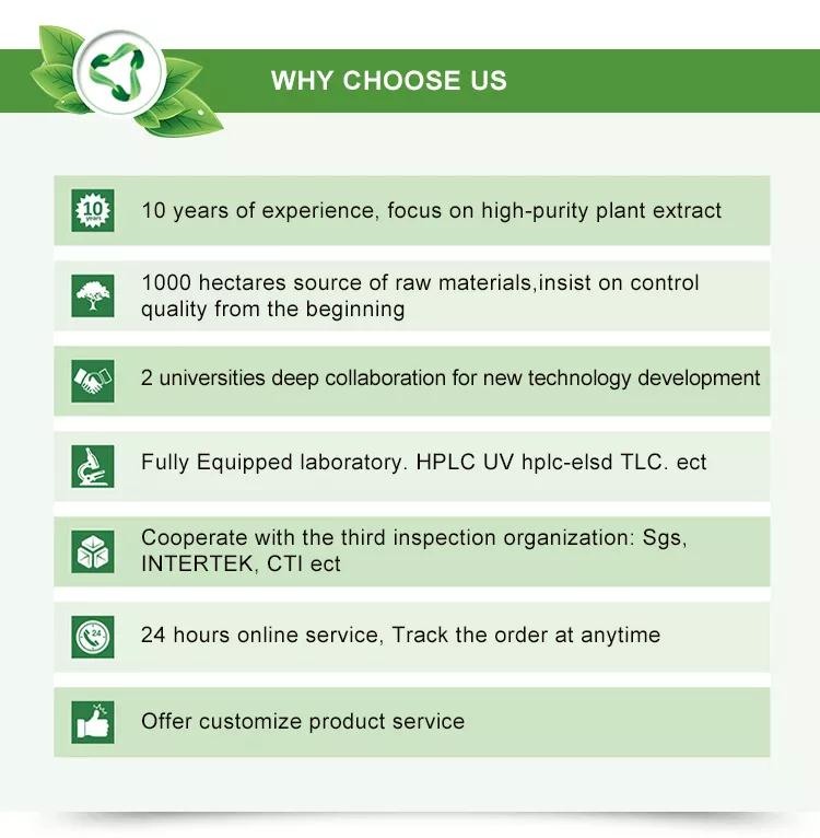 Main products: Eucommia extract - chlorogenic acid (5%-98%), ursolic acid (25%-98%), corosolic acid (1%-98%), bitter amygdalin (50%-98%), epimedoside (10%-98%) and other standardized high-purity plant extracts.