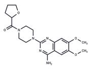 | In vivo | Terazosin produces a dose-dependent, complete inhibition of motor activity and catalepsy. Intraventricularly administered this antagonist protects striatal and cerebral cortical alpha 1 receptors but not striatal or cortical D1 receptors from in vivo alkylation by N-ethoxycarbonyl-2-ethoxy-1,2-dihydroxyquinoline. Intraventricular terazosin also produces hypothermia and a reduced respiratory rate suggestive of a reduced sympathetic outflow. Terazosin does not impair performance on a horizontal wire test or the ability to make co-ordinated movements in a swim test[2].Terazosin significantly inhibits vascular endothelial growth factor induced angiogenesis in nude mice with an IC50 of 7.9 μM, showing that it has a more potent anti-angiogenic than cytotoxic effect[3]. |