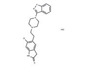 | In vitro | Ziprasidone demonstrates the ability to inhibit the significant increase in food intake induced by olanzapine in rats, indicating an intrinsic protective mechanism against drug-induced hyperphagia. Furthermore, Ziprasidone significantly enhances the immunoreactivity of NGF and ChAT in the dentate gyrus, CA1, and CA3 regions of the rat hippocampus. In anesthetized rats, Ziprasidone exhibits a dose-dependent reduction in the activity of midline thalamic neurons, similar to atypical antipsychotic drugs such as clozapine (ED50 = 250 mg/kg i.v.) and olanzapine (ED50 = 1000 mg/kg i.v.), with an ED50 value of 300 mg/kg i.v. Additionally, Ziprasidone has a relatively low blocking effect on the wild-type hERG current in Xenopus oocytes, with an IC50 of 2.8 mM. |