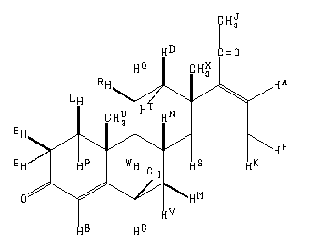 A 6.711 B 5.736 C 2.44 D 2.44 E 2.48 to 2.30 F *1 2.34 G 2.30 J 2.266 K *1 2.079 L 2.029 M 1.881 N 1.764 P 1.704 Q 1.618 R 1.548 S 1.429 T 1.339 U 1.219 V 1.122 W 1.004 X 0.944 ASSIGNED BY H-H AND C-H COSY. J(A,F)=3.4HZ J(A,K)=1.8HZ J(D,T)=-12.7HZ J(D,R)=4.4HZ J(D,Q)=2.4HZ J(F,K)=-17.1HZ J(F,S)=6.5HZ J(G,V)=4.4HZ J(K,S)=12.1HZ J(L,P)=-13.4HZ J(M,N)=3.7HZ J(N,S)=11.6HZ J(N,W)=10.8HZ J(Q,T)=5.0HZ J(Q,R)=-14.0HZ J(Q,W)=5.2HZ J(R,W)=12.4HZ J(R,T)=12.4HZ