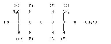 Assign. Shift(ppm) A 3.94 B *1 3.67 B *1 3.601 C *2 3.67 C *2 3.479 D 3.381 E 3.37 F *2 3.30 G *1 3.207 J *3 1.143 J *3 1.139 K *3 1.132 K *3 1.113 MIXTURE OF OPTICAL ISOMERS. ASSIGNED BY C-H COSY.