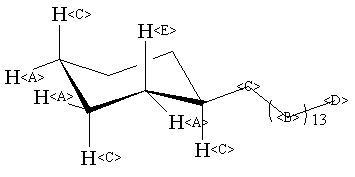 Assign. Shift(ppm) A 1.84 to 1.45 B 1.26 C 1.45 to 1.01 D 0.88 E 1.01 to 0.67