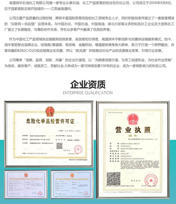 南通润丰石油化工有限公司是一家专业从事化工原料贸易,及各类化工助剂、聚氨酯原料、涂料胶水原料、食品添加剂、水处理剂等化工产品销售的综合性化工供应链服务公司,主营产品:苯酚,二甲基亚砜,丙二醇,乙二醇,甲醇,甲苯,丙酮,丁酮等,为您详细介绍化工产品用途、型号、以及最新市场报价。