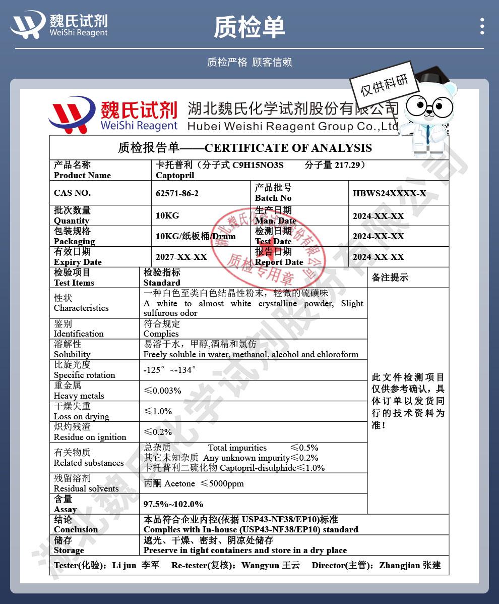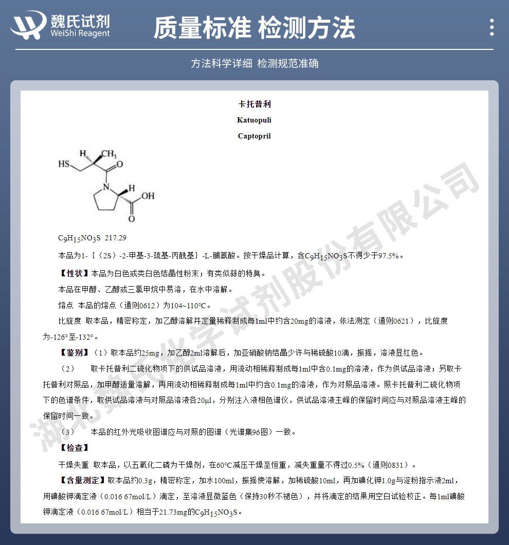 - 卡托普利 99%含量现货 维斯尔曼生物_13419635609王明