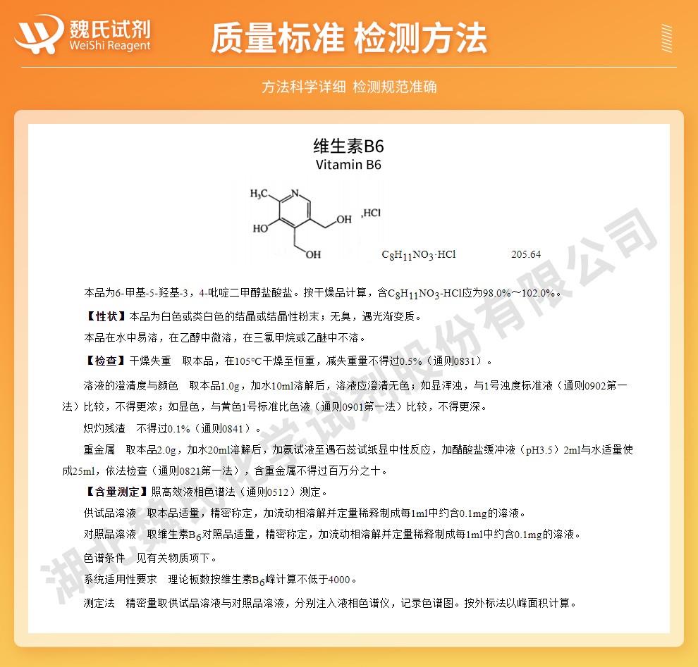 - 标准物质/0.1mol/L盐酸中盐酸吡哆醇(浓度以非盐计)/GB 5009.154-2023,有效期6个月/保质期6个月,58-56-0