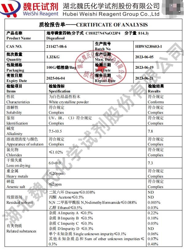 - 211427-08-6 地夸磷索四钠;地夸磷索钠 鼎信通主营 -化学材料