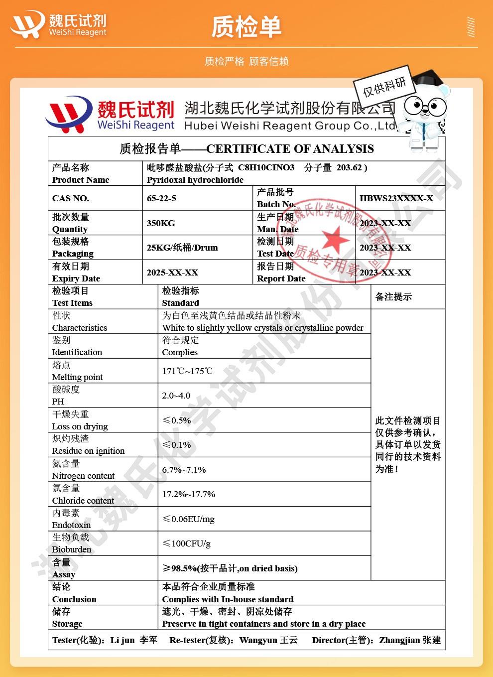 - 65-22-5 盐酸吡哆醛;吡哆醛盐酸盐 —— 检测方法 -技术资料 -质量标准 -性质 -合成材料中间体 -鼎信通李杰