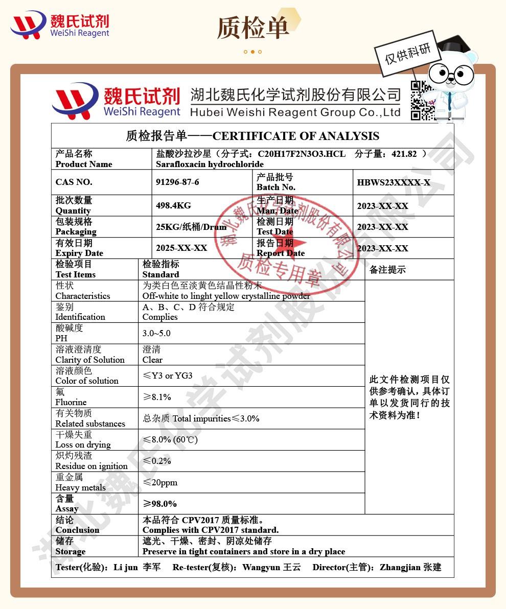 - 盐酸沙拉沙星|91296-87-6