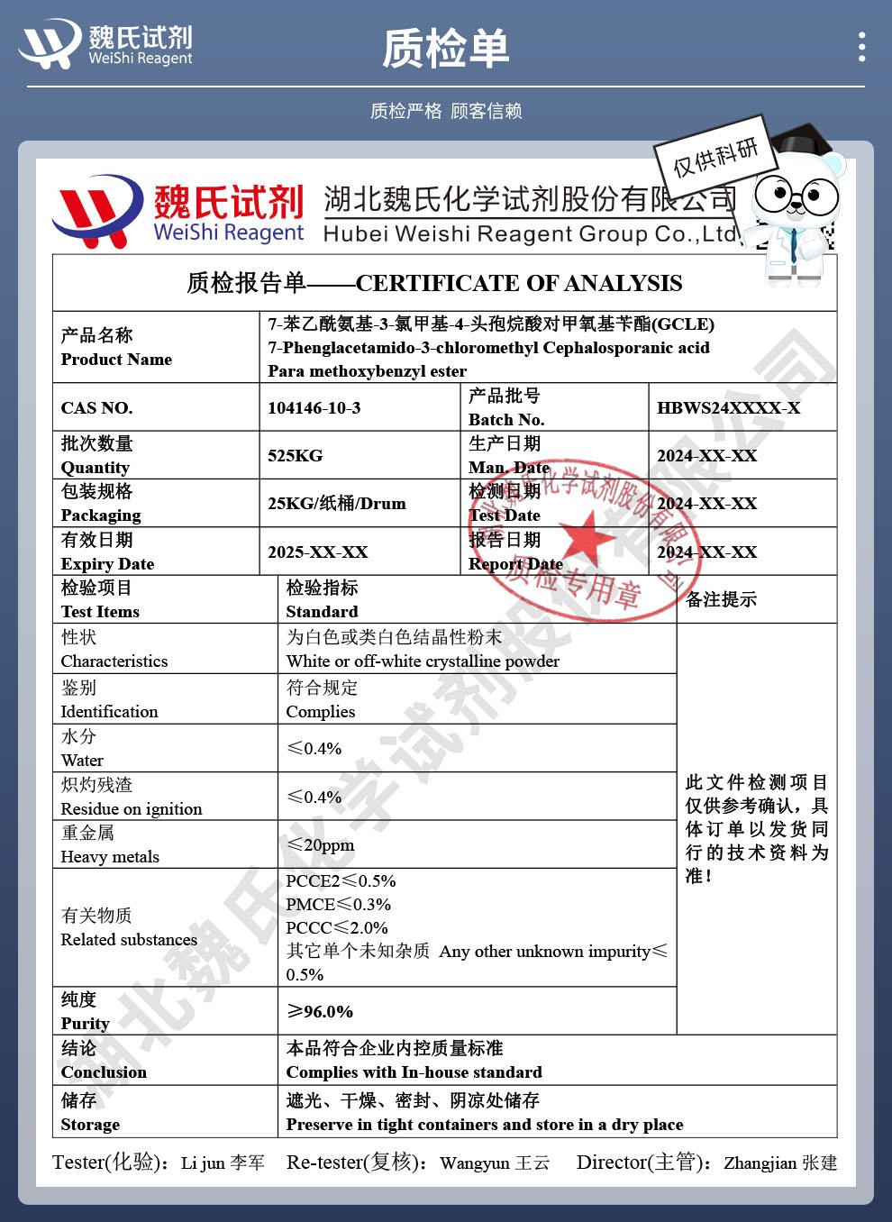 - 7-苯乙酰氨基-3-氯甲基-4-头孢烷酸 104146-10-3 湖北威德利优势现货产品