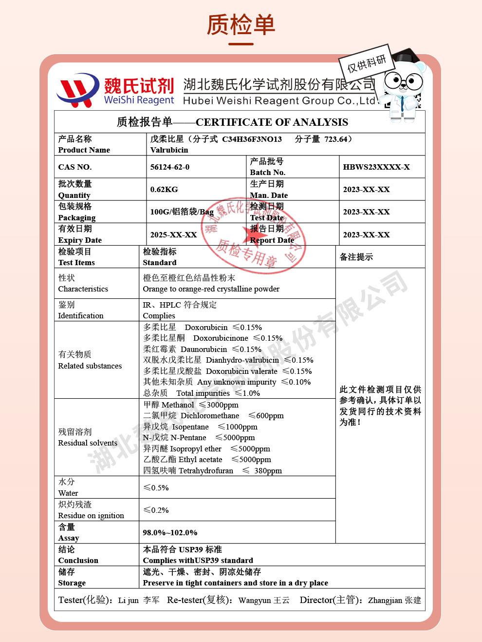 - 戊柔比星_56124-62-0_COA_MSDS_用法用量