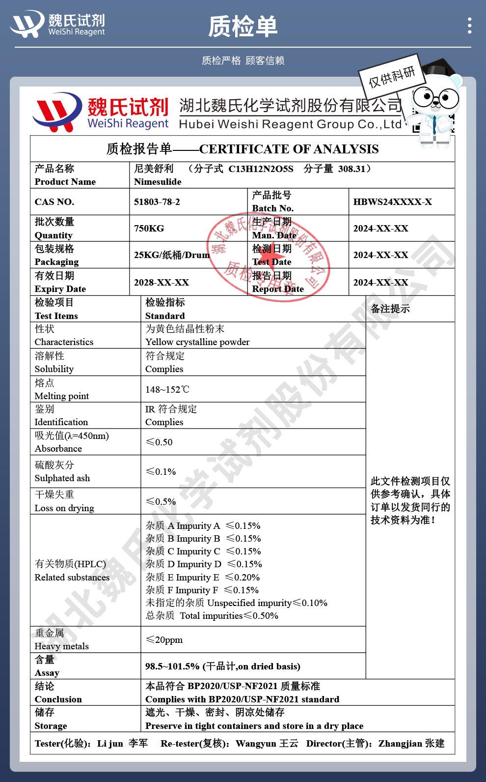 - 尼美舒利 51803-78-2 维斯尔曼生物高纯试剂 13419635609
