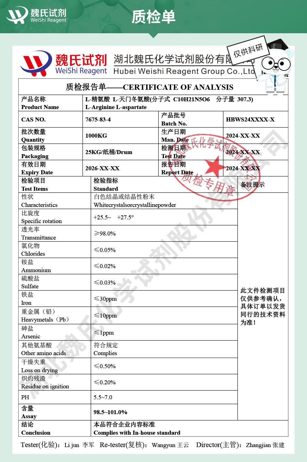 - L-精氨酸 L-天门冬氨酸 食品及饲料添加剂