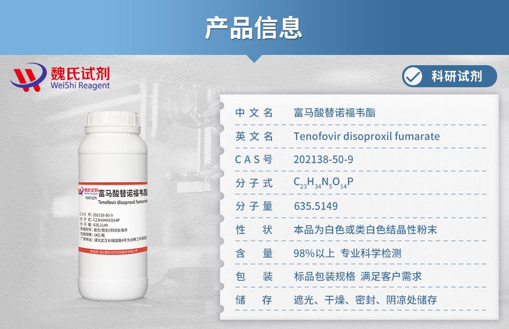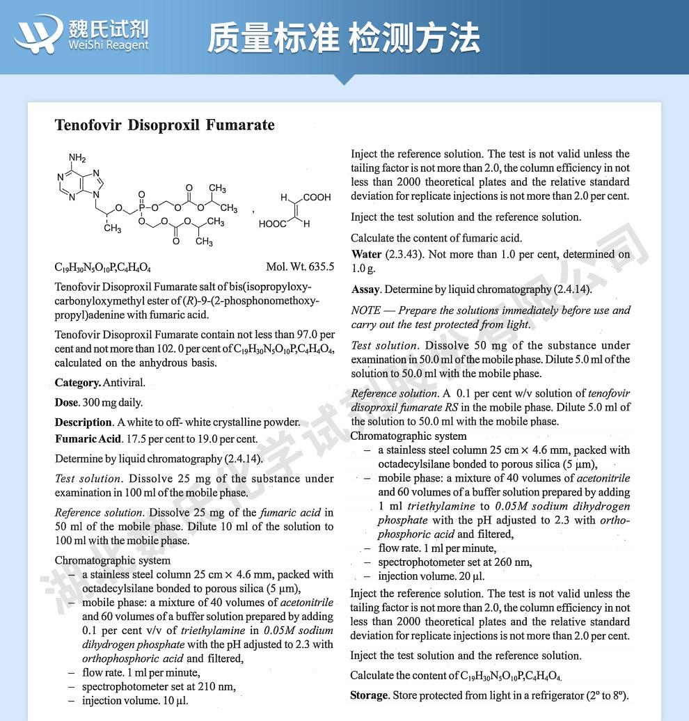 - 富马酸替诺福韦酯 202138-50-9 含量98.5% 湖北威德利 陈明 13339985473同微