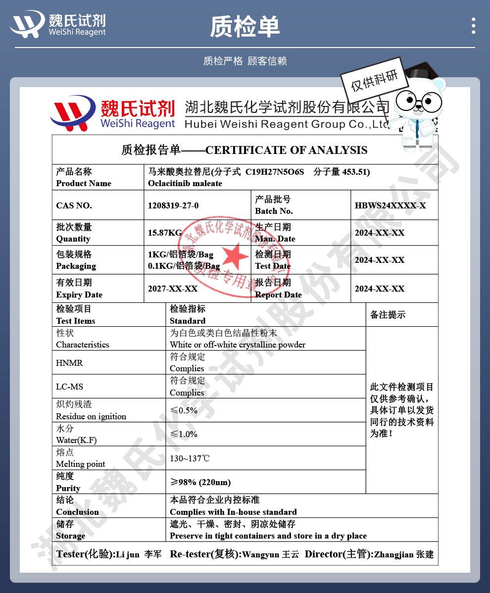 - 生产科研试剂马来酸奥拉替尼Oclacitinib Maleate厂家威德利批发供应