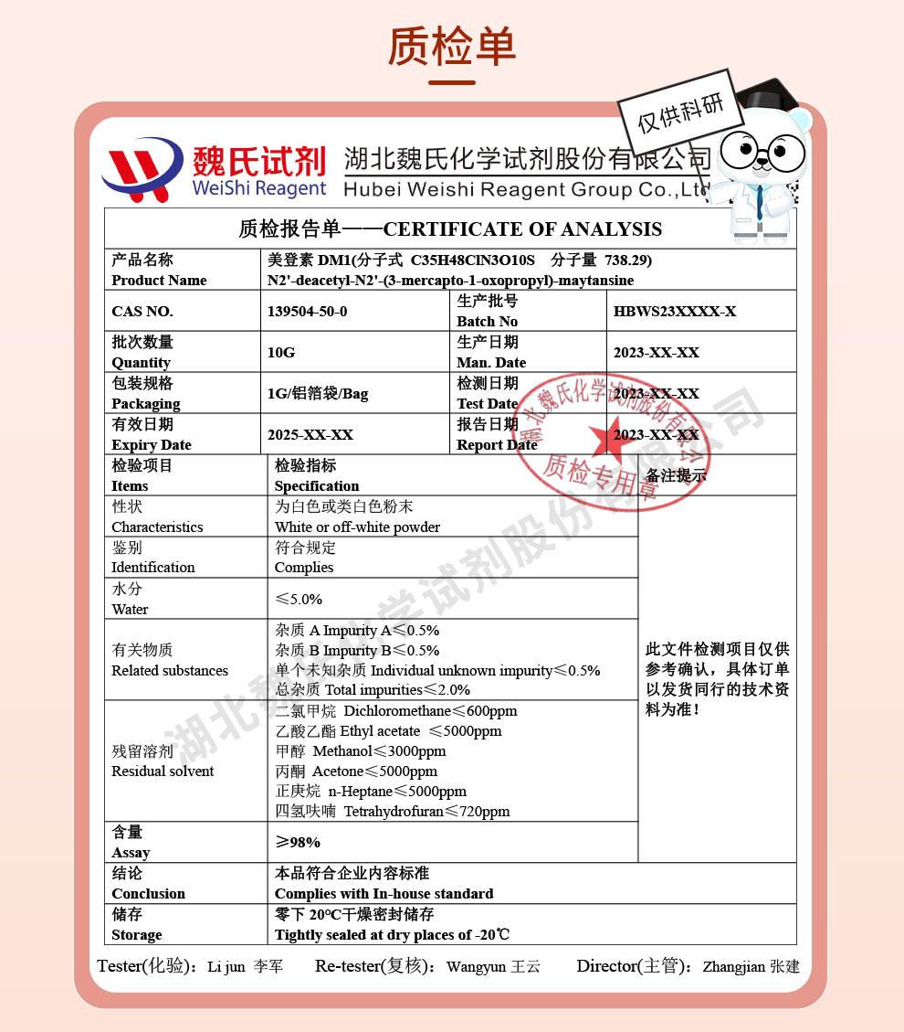 - ADS小分子管道抑制剂DM-1美登素139504-50-0厂家技术