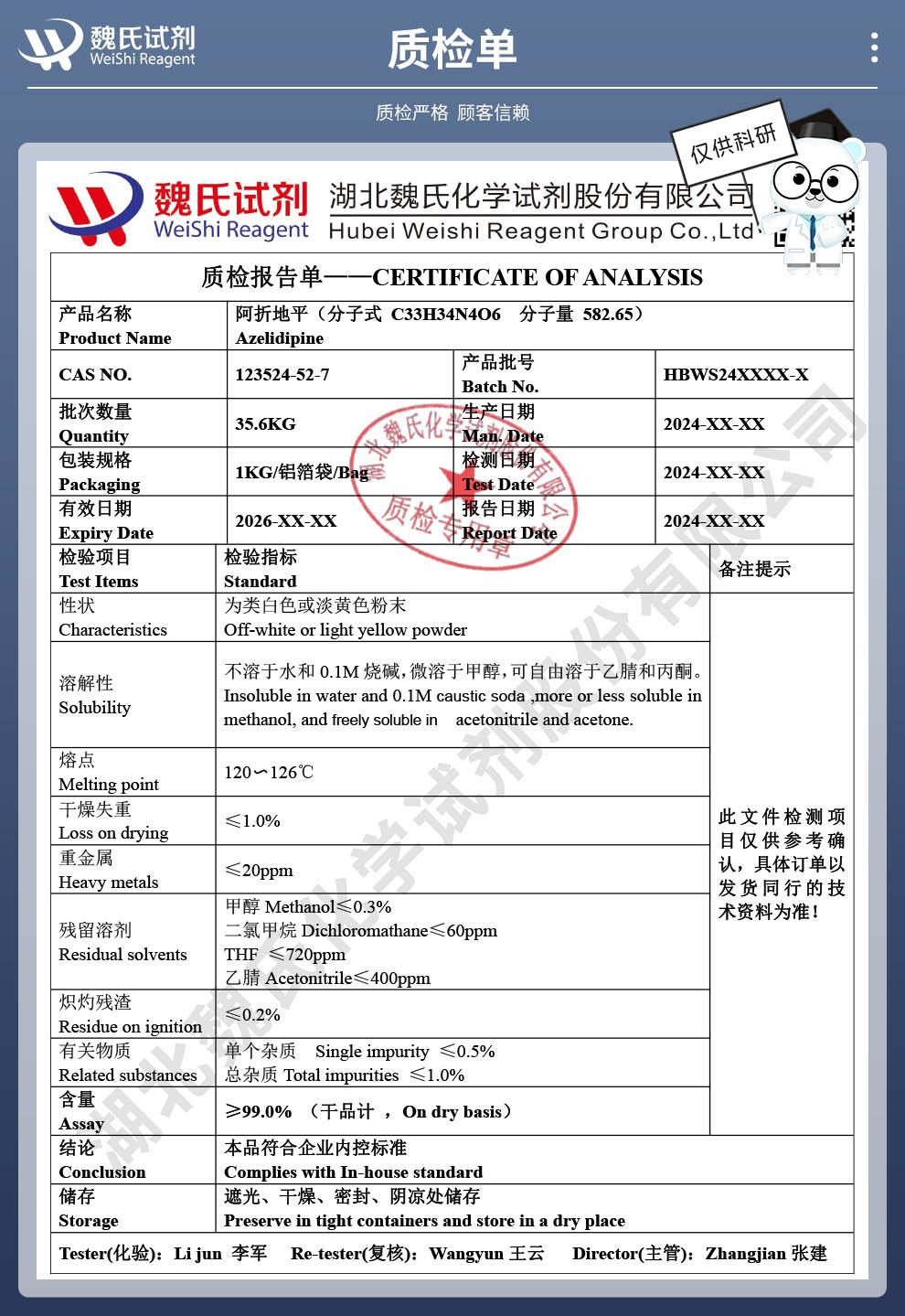 - 123524-52-7 阿折地平 提供检测方法等资料 鼎信通药业李杰 18327179646