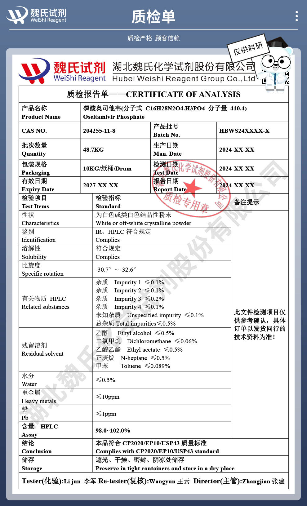 魏氏化学试剂采用ERP系统和试剂商城,为国内外科研机构客户提供及时完善的产品技术服务。公司奉行以“质量为生命,科技为先导,创新求生存,诚信为本”的企业宗旨,坚持“团结拼搏,追求卓越,精益求精,合作发展”的企业理念,诚挚与国内外同仁精诚合作,互利互惠,携手共赢。