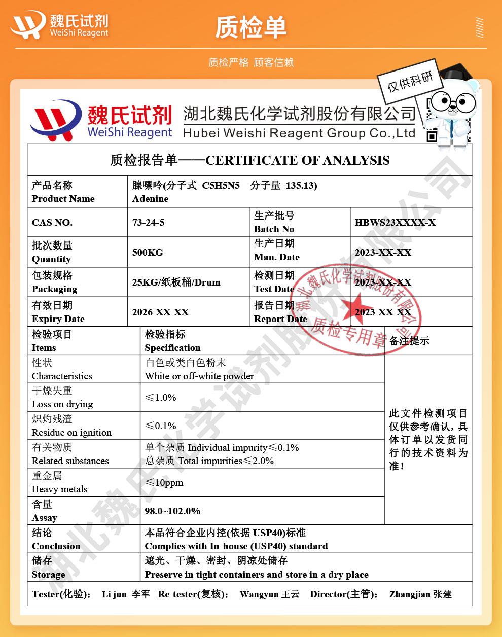 - 腺嘌呤国标优级品质量稳定