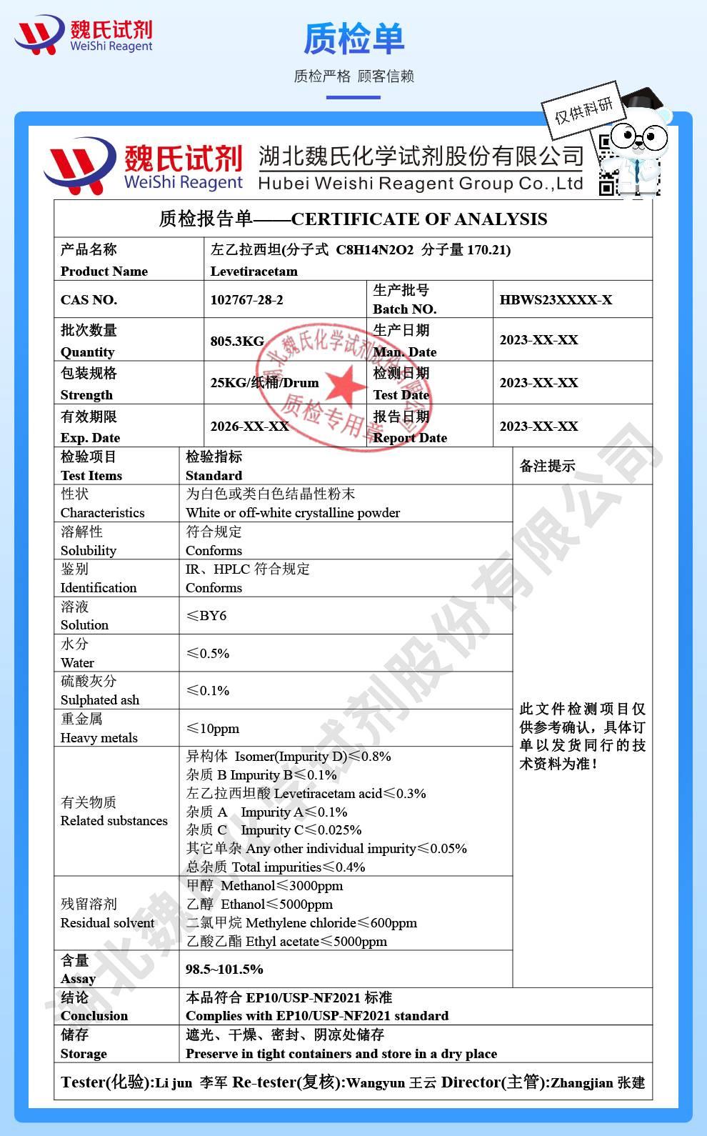 - 左乙拉西坦 102767-28-2 99%含量 维斯尔曼生物现货13419635609