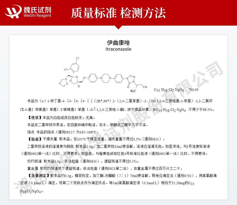- 伊曲康唑 84625-61-6 维斯尔曼生物高纯试剂 13419635609