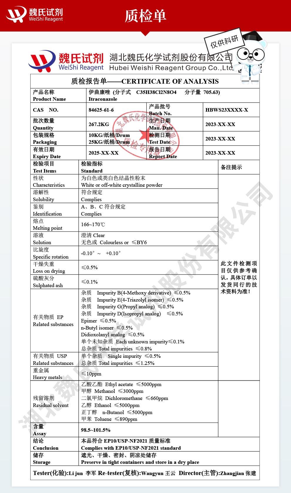 - 高纯度伊曲康唑实验室级试剂