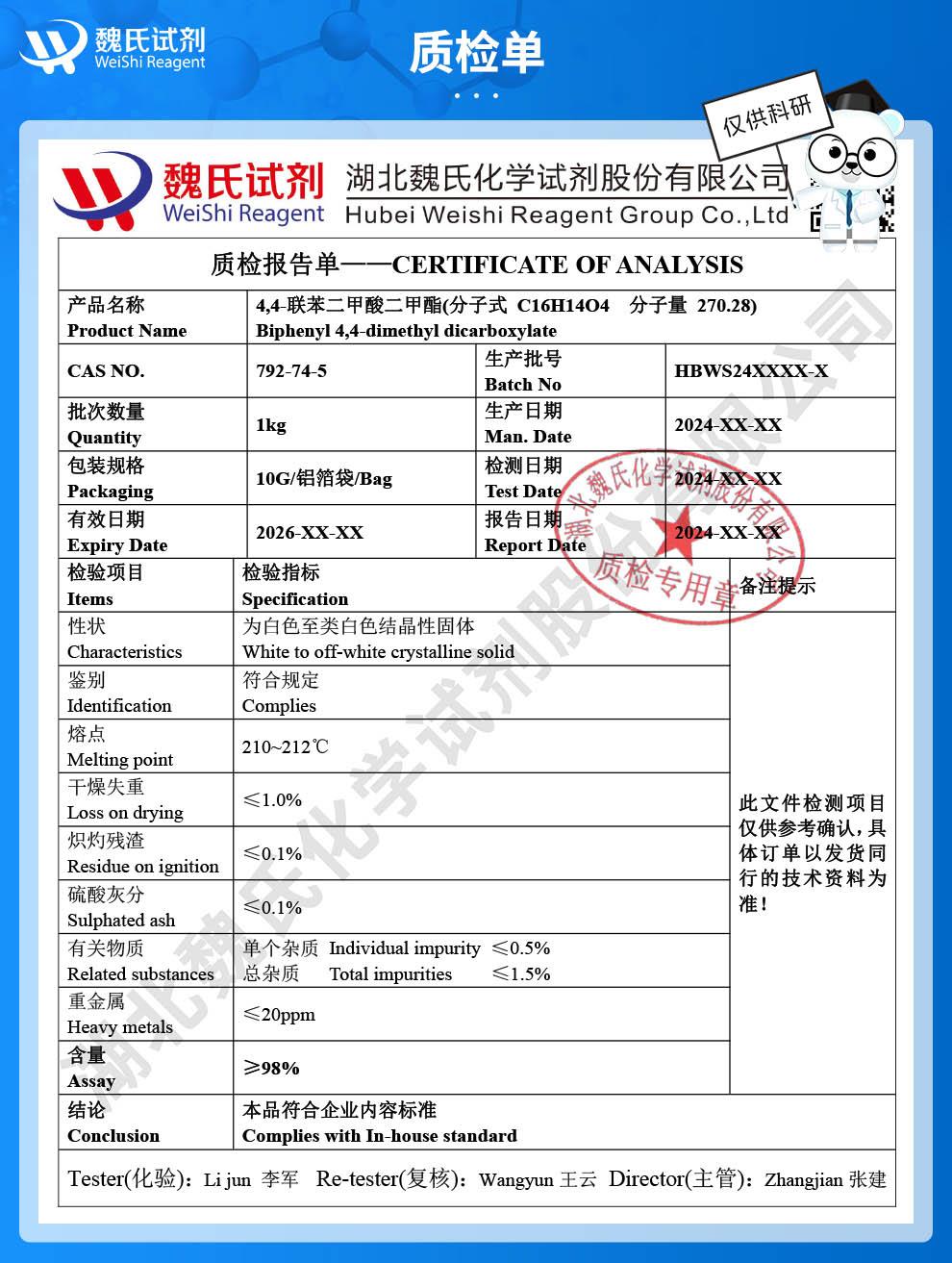 魏氏化学试剂采用ERP系统和试剂商城,为国内外科研机构客户提供及时完善的产品技术服务。公司奉行以“质量为生命,科技为先导,创新求生存,诚信为本”的企业宗旨,坚持“团结拼搏,追求卓越,精益求精,合作发展”的企业理念,诚挚与国内外同仁精诚合作,互利互惠,携手共赢。