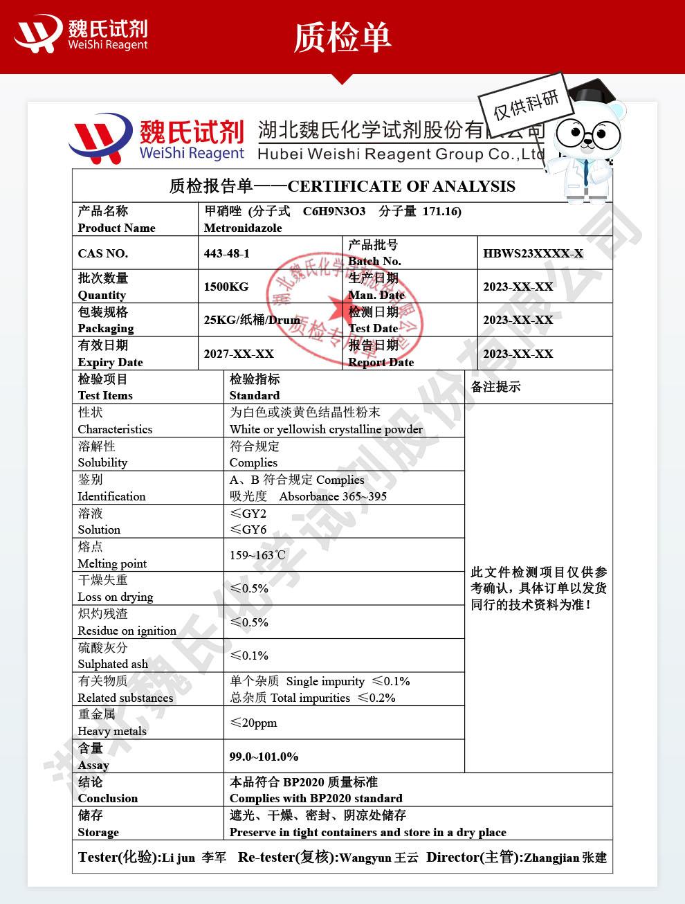 - 甲硝唑厂家当天发货 吨位甲硝唑 99% 443-48-1威德利