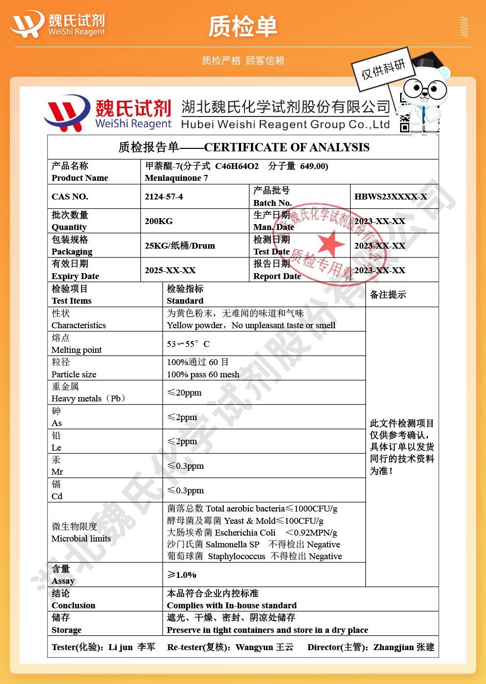- 七烯甲萘醌;维生素K2 2124-57-4