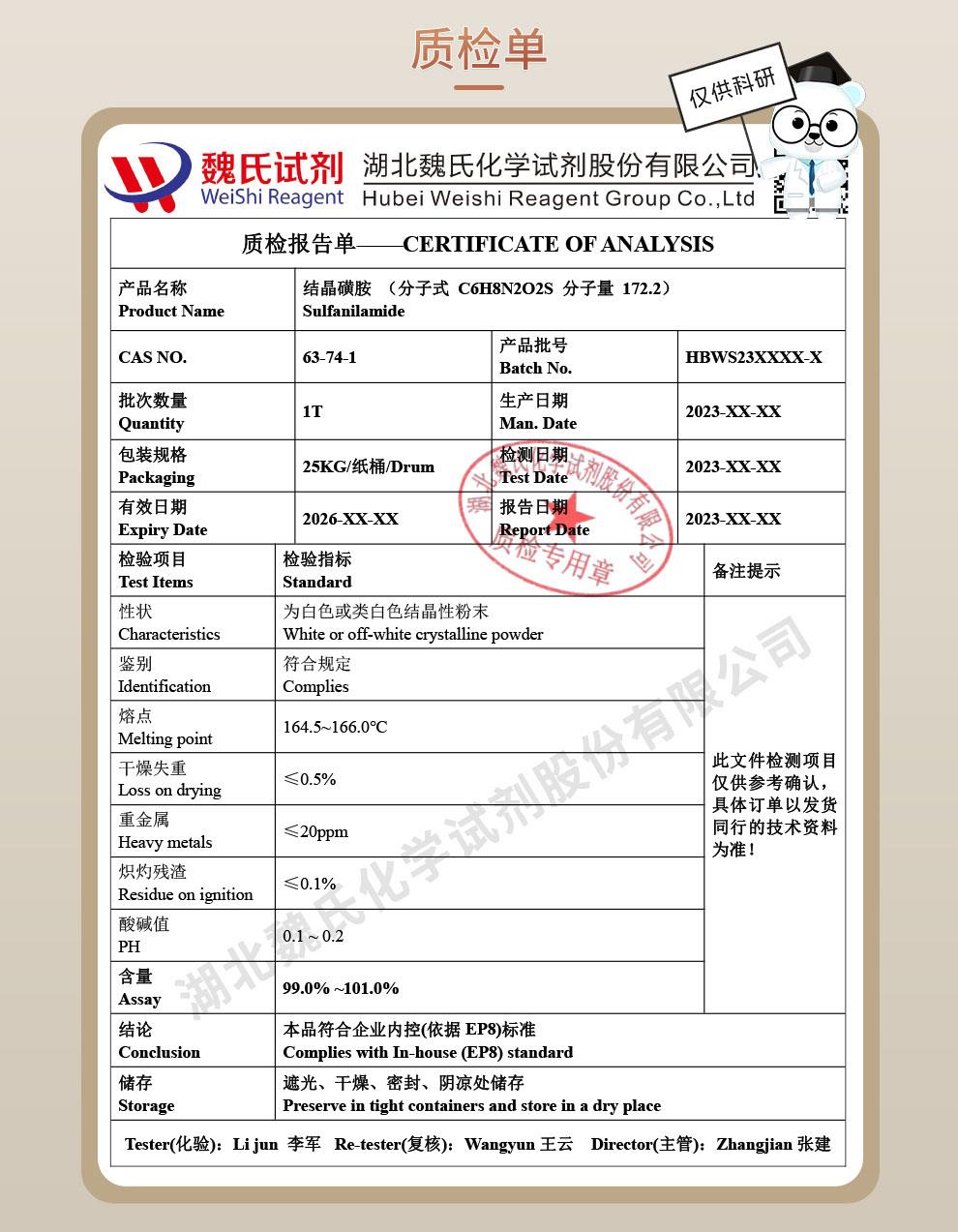 - 结晶磺胺 63-74-1 中间体 可分装 可试样