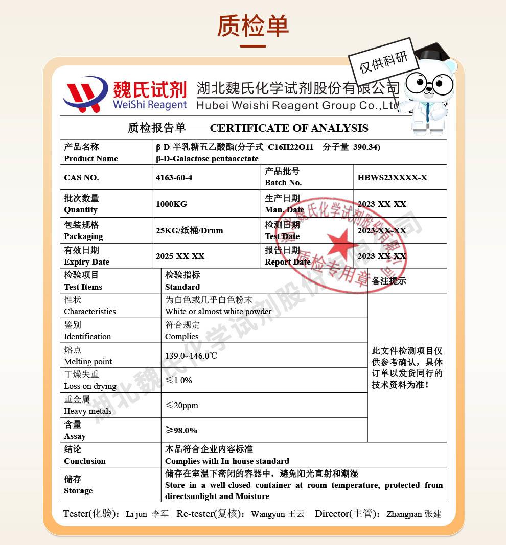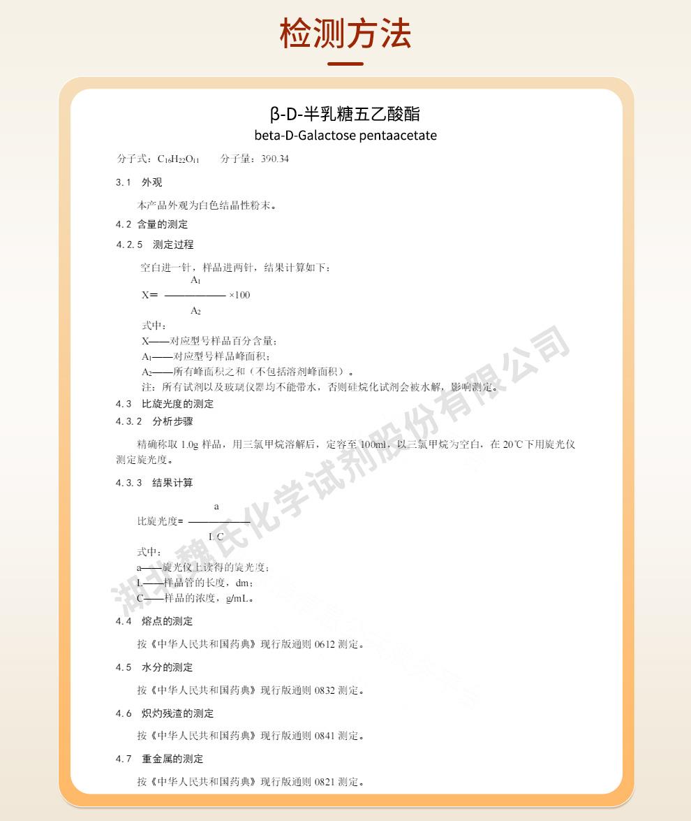 - 4163-60-4 β-D-半乳糖五乙酸酯 —— 检测方法 -质量标准 -技术资料 -性质 -食品添加剂 -中间体试剂 -鼎信通李杰