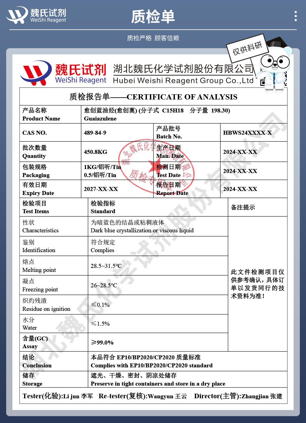 - 愈创兰油烃,489-84-9,愈创蓝油烃,含量99%