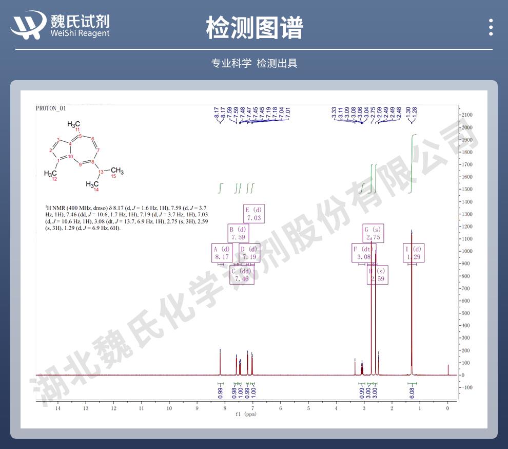 湖北魏氏化学试剂股份有限公司位于湖北武汉市,是一家专业从事科研化学试剂 、生物化工原材料、精细化工和日用化学品?等高新技术产品?研究开发和外贸出口销售融于一体的高科技现代化民营企业。