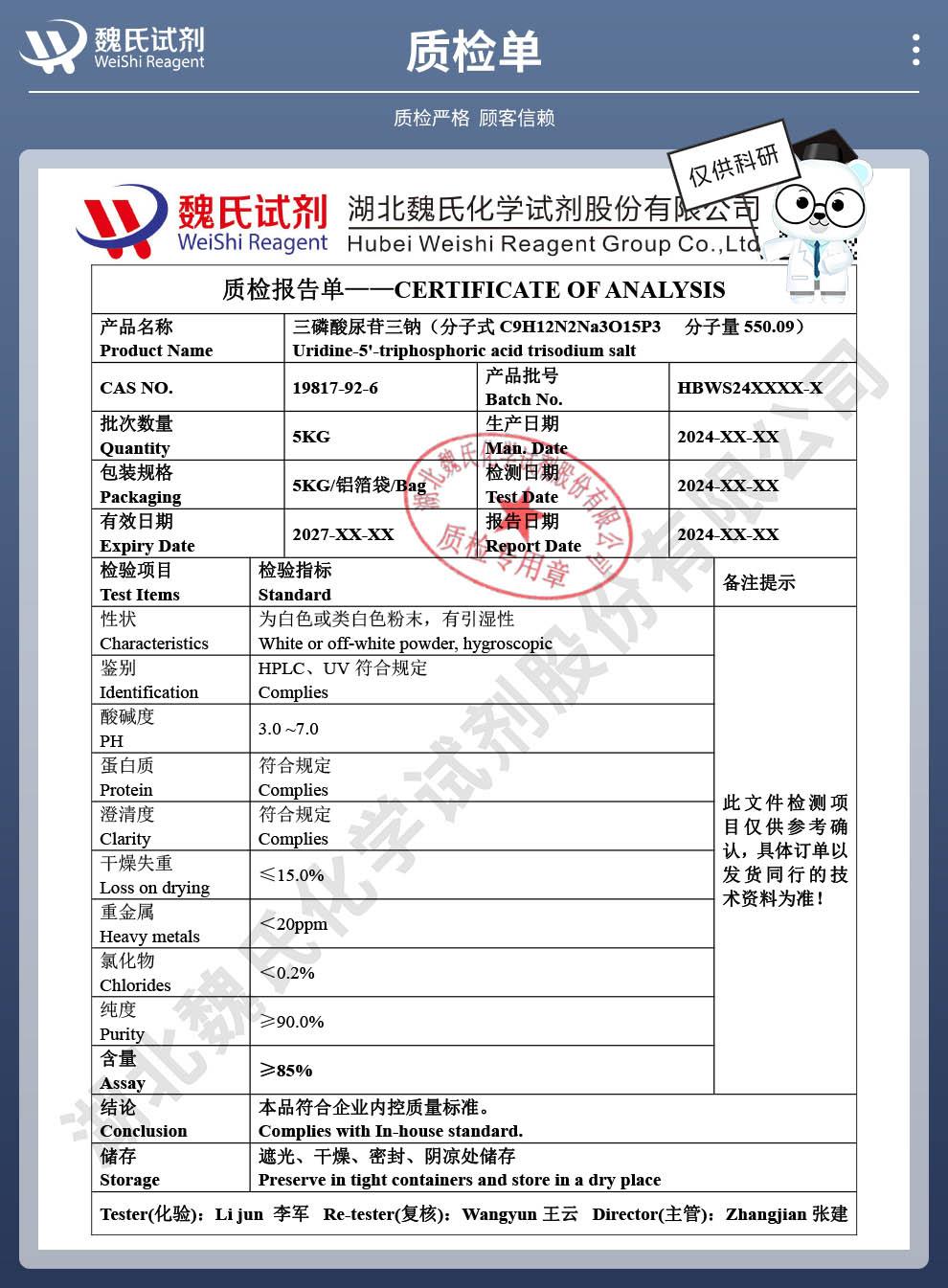 - 19817-92-6 三磷酸尿苷三钠 —— 检测方法 -技术资料 -生化试剂 -科研试剂 -实验室材料 -性质 -质量标准 -鼎信通李杰
