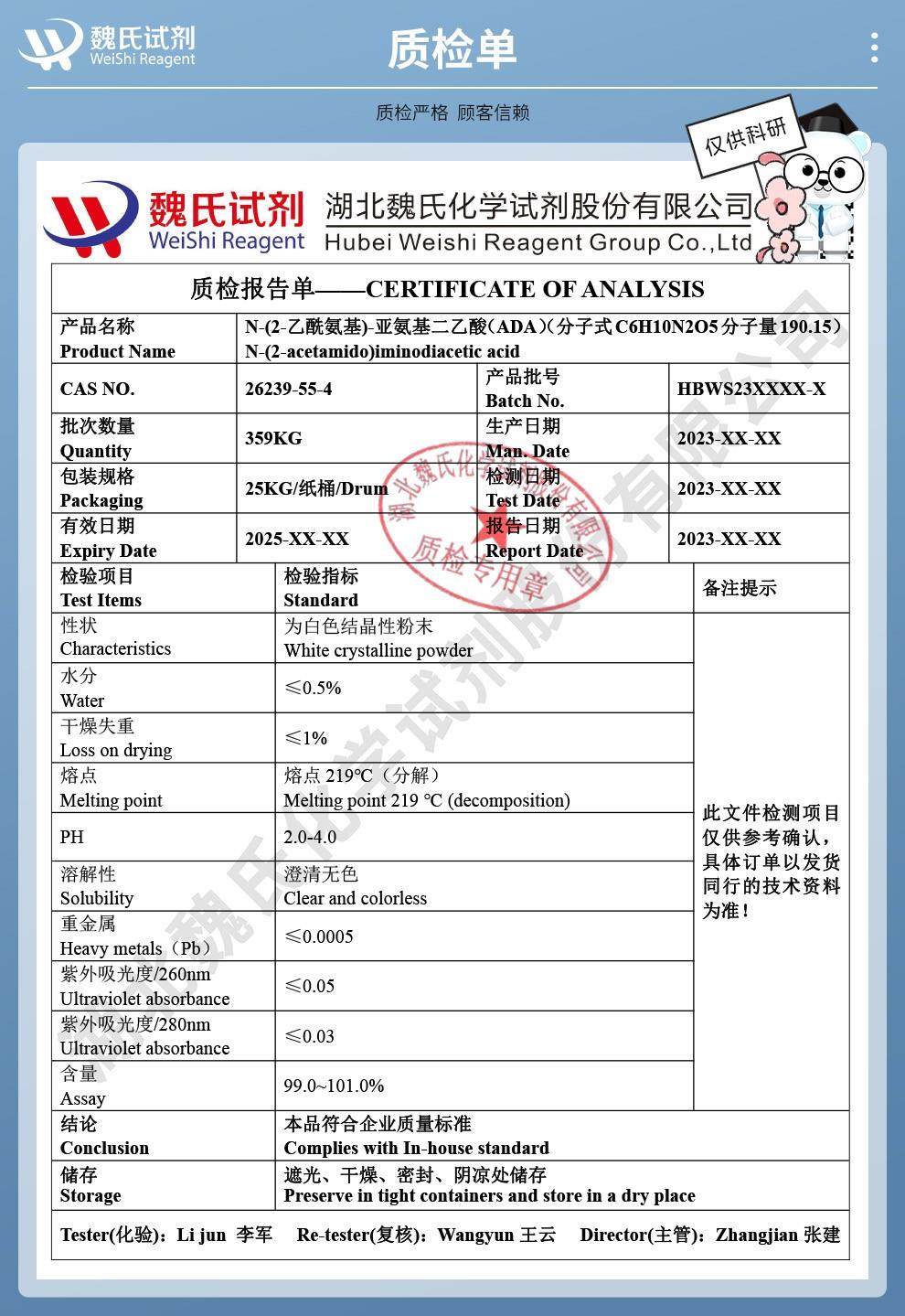 - N-(2-乙酰氨基)-2-亚氨基二乙酸(ADA) 26239-55-4 医药中间体