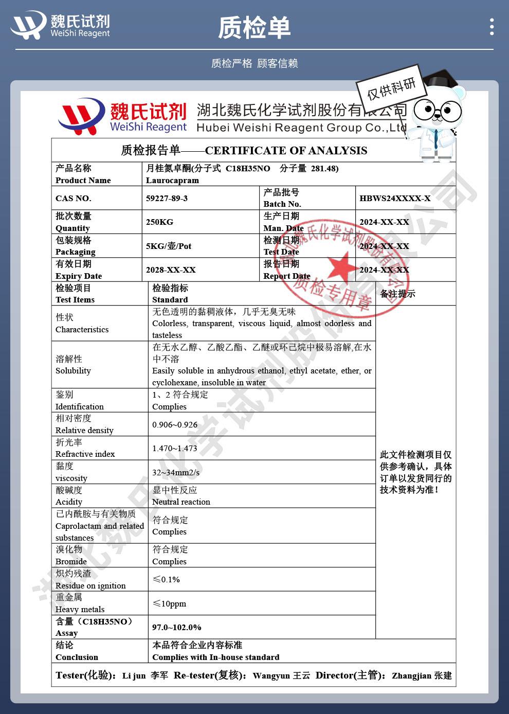 - 月桂氮?酮(药用辅料),一瓶有质检单,含量97.0%以上